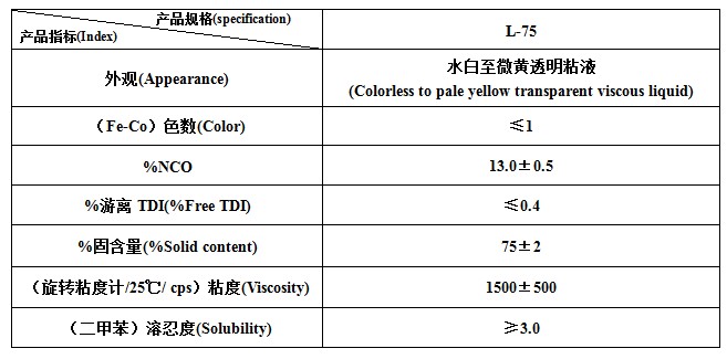 具有色泽浅、游离TDI单体含量低(≤0.4)、符合欧标要求、环保效应好、光泽高、流平好、透明度佳、相溶性优异、耐化学品性好、贮存稳定等产品特性。可应用于高端PU环保装修漆 、高端亮光家具面漆、粘合剂等领域。